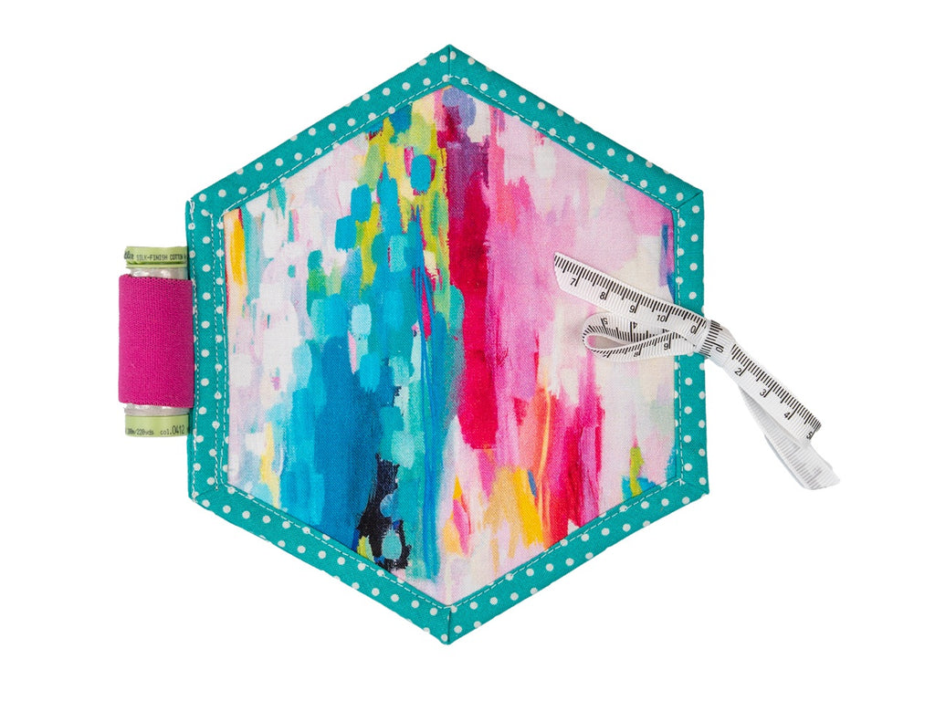 Large Hexagon Sewing Book Kit - Pink / Turq Brush Strokes