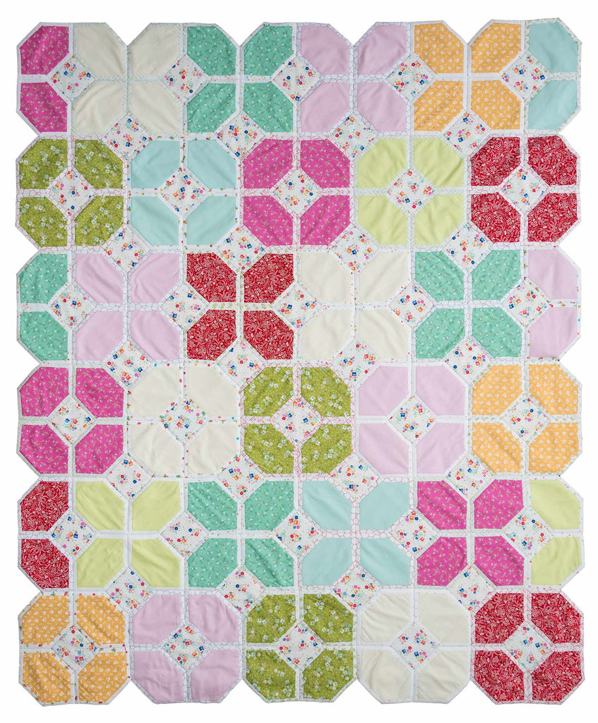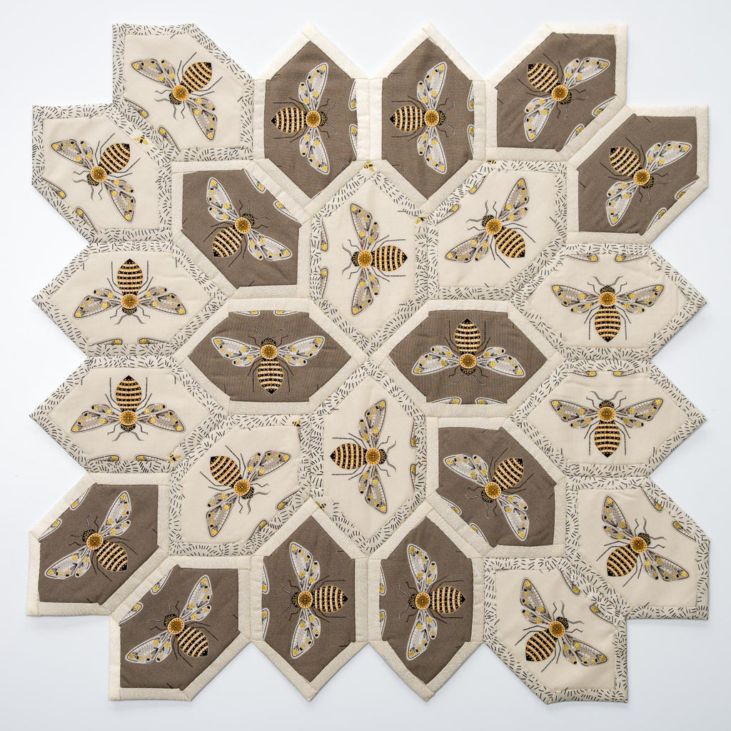 The templates allow you to position your central Honeycomb exactly in the center which then makes folding the bindings really easy. As its clear you can position the Honeycomb so fussy cutting is hassle free. Stitching the Honeycombs can be done by hand or machine, and once each one is complete you have a little mini quilt so you can just keep adding to them (no UFO's- unfinished objects..).